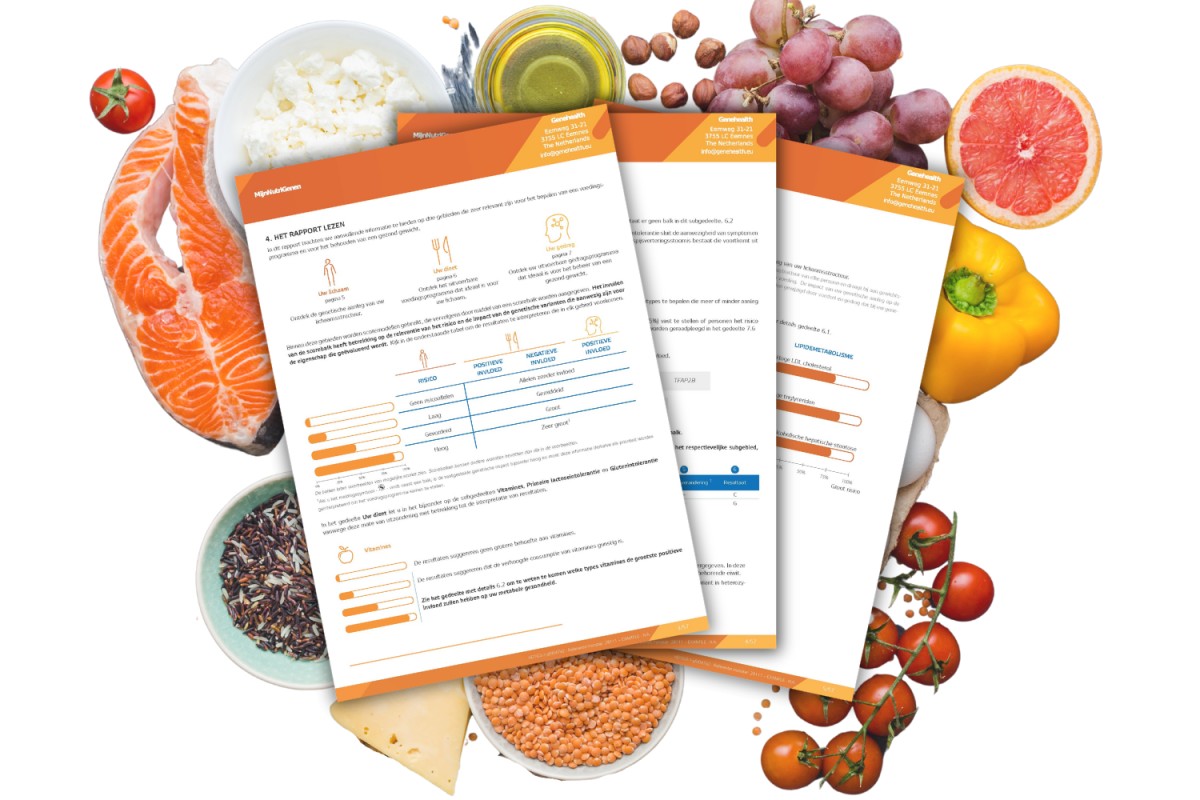 Omdat voeding een complex onderwerp is, krijg je een uitgebreid rapport van meer dan 50 pagina's met uitleg en voorbeelden over elk onderdeel waar we op testen. Zo kan je direct aan de slag met de informatie uit je DNA.